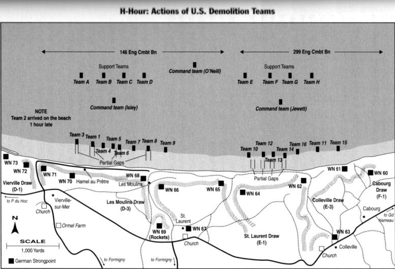 - Une partie des 6ème et 5ème Brigades spéciales du Génie , chargées d'exploiter les parties Ouest et Est de Omaha Beach.