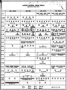 Table des débarquements (Landing Diagram) du 6 juin sur la moitié Ouest d'Omaha Beach (prévisions)