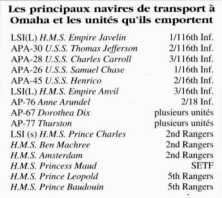 Les principaux LSI (les transports d'assaur, qui chargeaient chacun environ un bataillon ou un millier de soldats, avec leurs péniches de débarquement, LCA , LCVP ou LCM