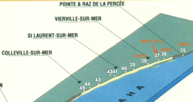 Les secteurs de plages prévus pour l'assaut étaient situés entre les vallons de Saint-Laurent (sortie D3) et Le Ruquet (sortie E1), ce qui correspondait aux secteurs nommés Dog Red et Easy Green, (affectés à une partie de la 29ème Division d'Infanterie US), et le secteur Easy Red ouest, affecté à une partie de la 1ère Division d'Infanterie US.