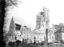 l'église ruinée en arrière-plan