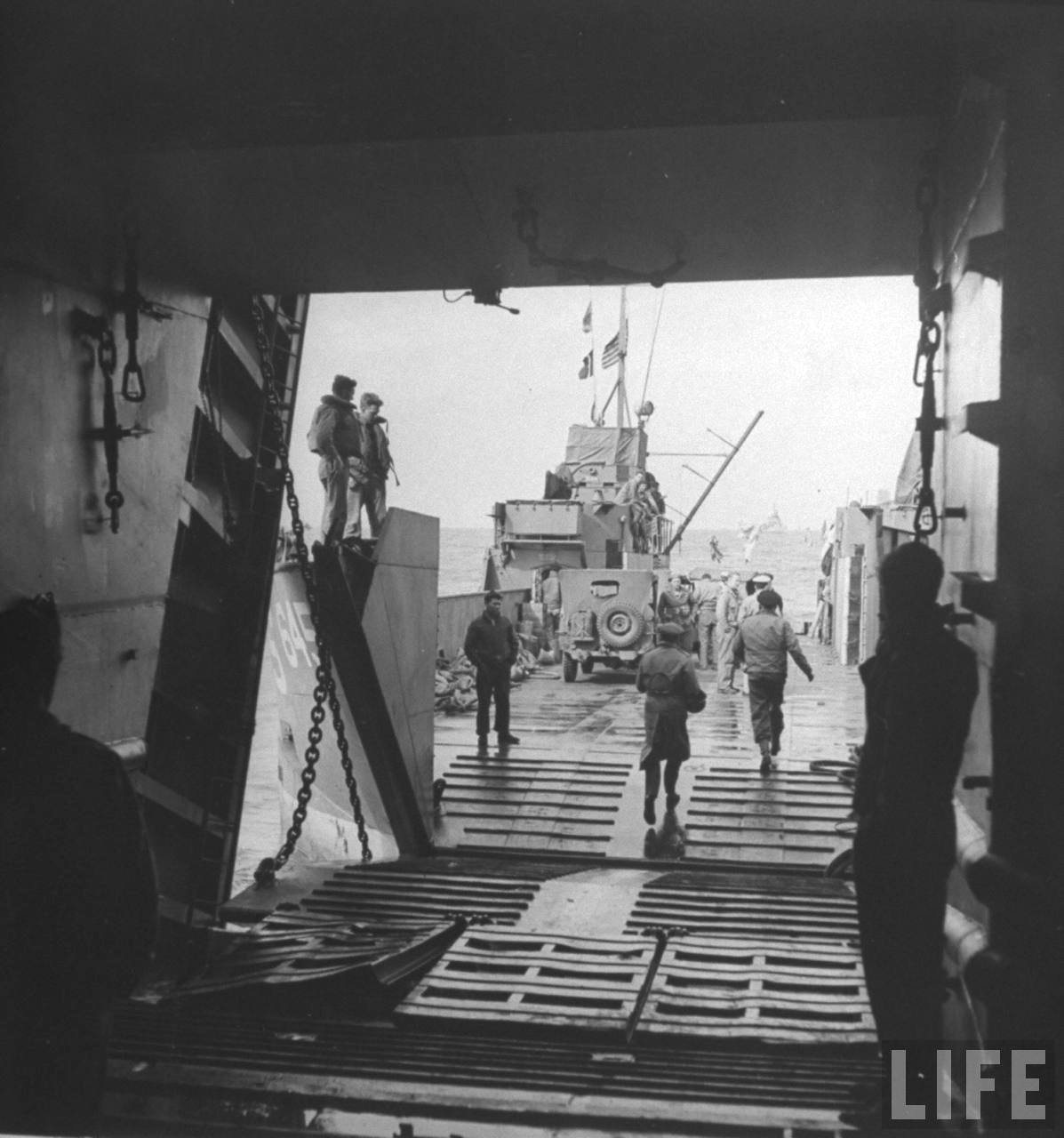 Vue de l'intérieur du LST dont la porte avant ouvre