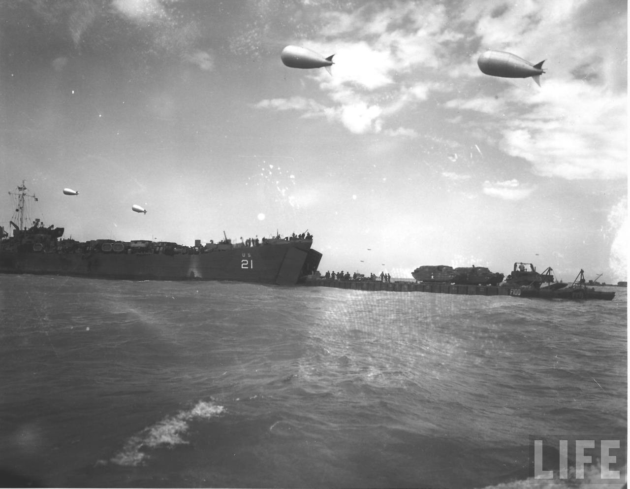 Convoi de LST le 5 juin, chacun d'eux avec un ballon de