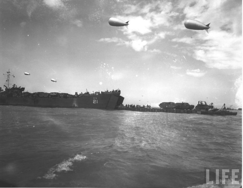 USS LST-373; USS LST-47 et deux LSTs non identifiés.