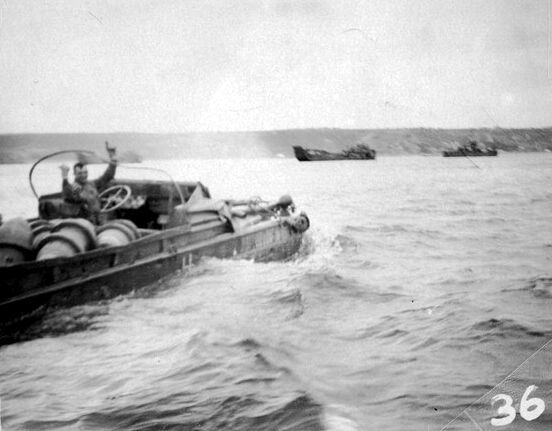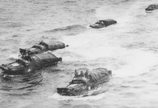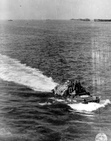 Un groupe de DUKW en mer, probablement le 6 juin car ils sont
