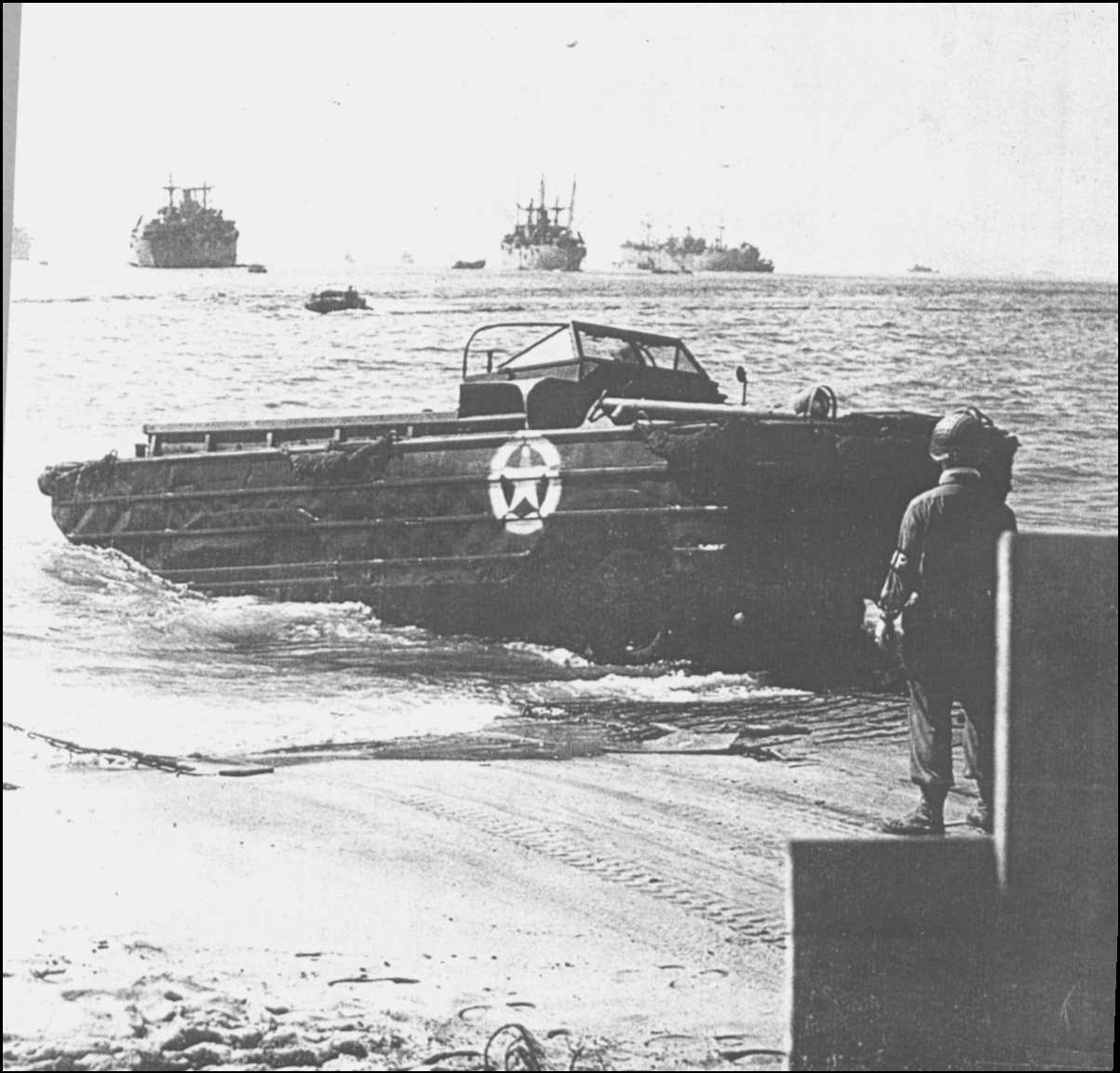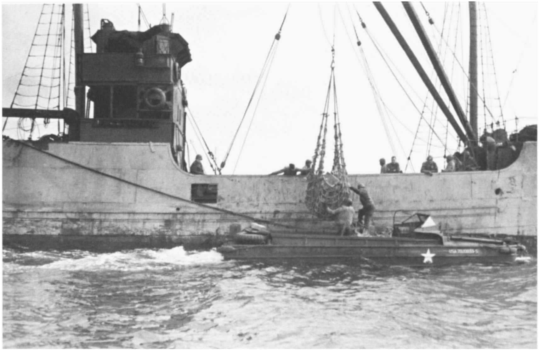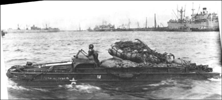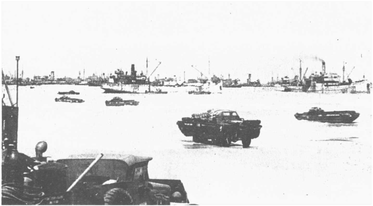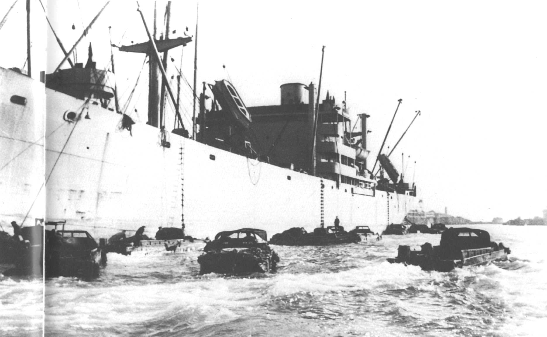 un Liberty Ship déchagé sur des DUKW à