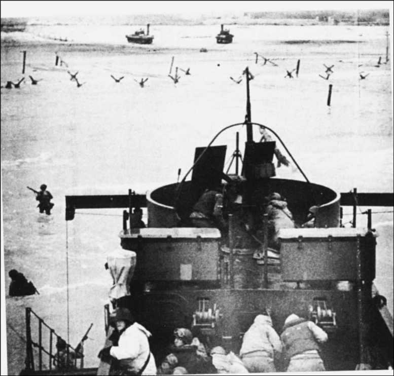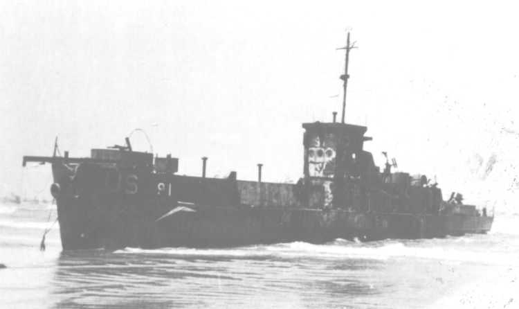 2621 Le LCI 91 est détruit à 7h45 sur la plage Dog White Un des désastres spectaculaires de la journée a été la perte du LCI 91 approchant de Dog White vers 7h 40 et transportant des sapeurs des 121ème et 147ème(Cie B) Bataillons du Génie (Lt Itzel), et le quartier général "alternate" du 116°Rég. commandé par le Lt-Colonel Cassell, adjoint du Colonel Canham et le capitaine JA Rice. Commandé par le Lieutenant Arend Vyn des Coast Guards, (voir le compte-rendu de ce skipper) manoeuvré par un équipage déjà expérimenté en Sicile et à Salerne, le LCI a été touché par l'artillerie en faisant un premier essai de traversée des obstacles. Reculant, la péniche est revenue pour un second essai. Un élément "C" apparaissait dans la marée montante et le LCI ne pouvait pas passer par dessus. Les 2 rampes latérales ont donc été abaissées dans 2 m d'eau. Alors que des officiers dirigeaient le débarquement, une quinzaine d'hommes sont descendus sans difficultés, puis soudainement un obus ou une roquette incendiaire (lancée par le WN68 au Montmain à St-Laurent?) a touché le pont avant encombré, (atteignant peut-être un réservoir de lance-flamme) et a provoqué une énorme boule de feu. Les vêtements en feu, des hommes ont sauté dans la mer, essayant de nager vers le rivage. On pense qu'il n'y eut aucun survivant sur les 25 du compartiment N°1. Quand