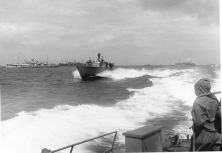 L'Amiral Stark montant à bord du croiseur USS "Augusta"