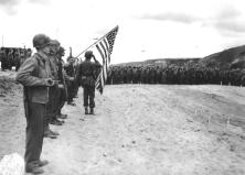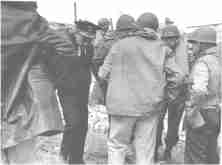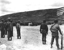 Rear Admiral John L. Hall , Jr., USN,avec les jumelles (centre,